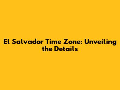 Hey guys! Ever wondered about the El Salvador time zone? If you're planning a trip, chatting with someone there, or just curious, you've come to the right place. This guide breaks down everything you need to know about the time in El Salvador, from its standard time to how it stacks up against other time zones. So, buckle up, and let's dive in! Understanding the time zone is crucial for smooth communication, travel planning, and business operations. El Salvador's time zone directly impacts daily schedules, meeting coordination, and the overall experience of interacting with the country. Whether you're a tourist, a business professional, or simply a curious individual, grasping the time difference is essential for a seamless and informed engagement with El Salvador.