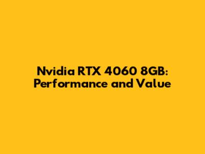 Nvidia RTX 4060 8GB: Performance And Value
